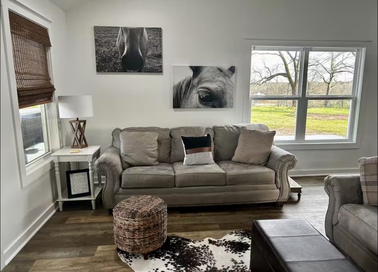 Spend a weekend at the farm. Escape to the charm of the countryside without sacrificing modern comfort at our onsite Airbnb. Nestled right here at Angus Valley Stables, our beautifully renovated modern farmhouse 3BR/2.5 BA blends rustic warmth with upscale finishes throughout. Every detail has been thoughtfully upgraded — from the stylish interiors to the cozy, light-filled spaces — creating the perfect retreat for relaxation after a day with the horses.